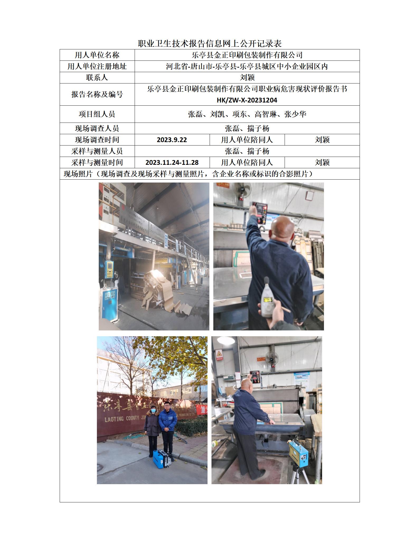 乐亭县金正印刷包装制作有限公司职业病危害现状评价报告