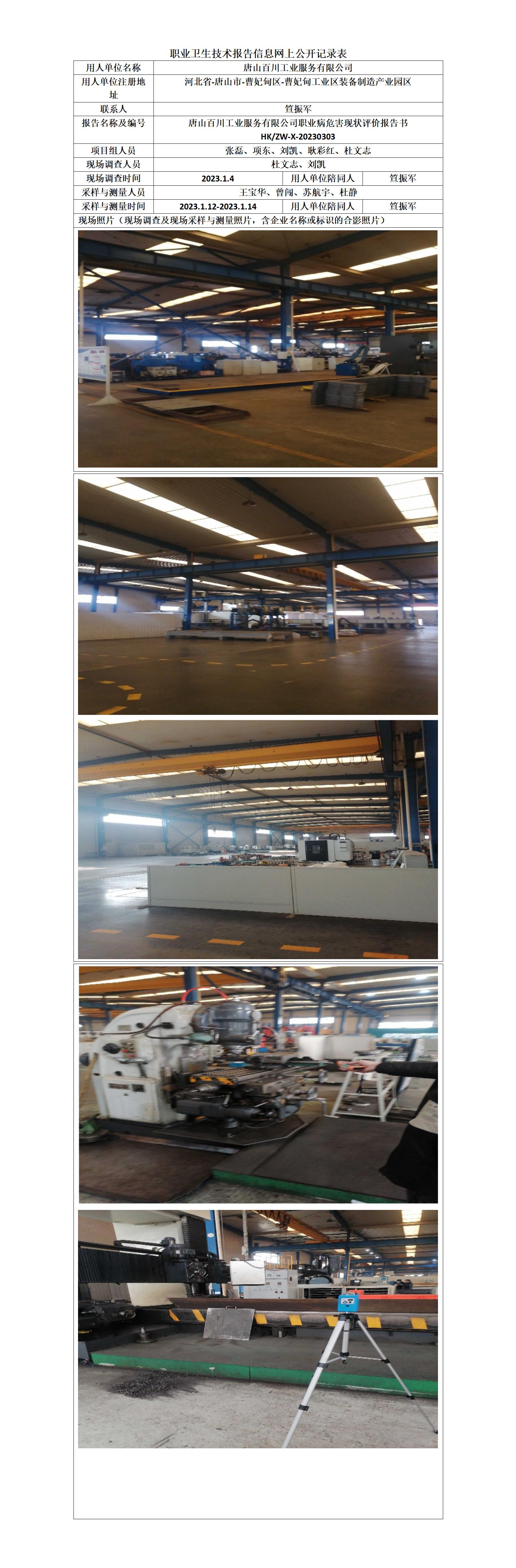 唐山百川工业服务有限公司职业病危害现状评价报告