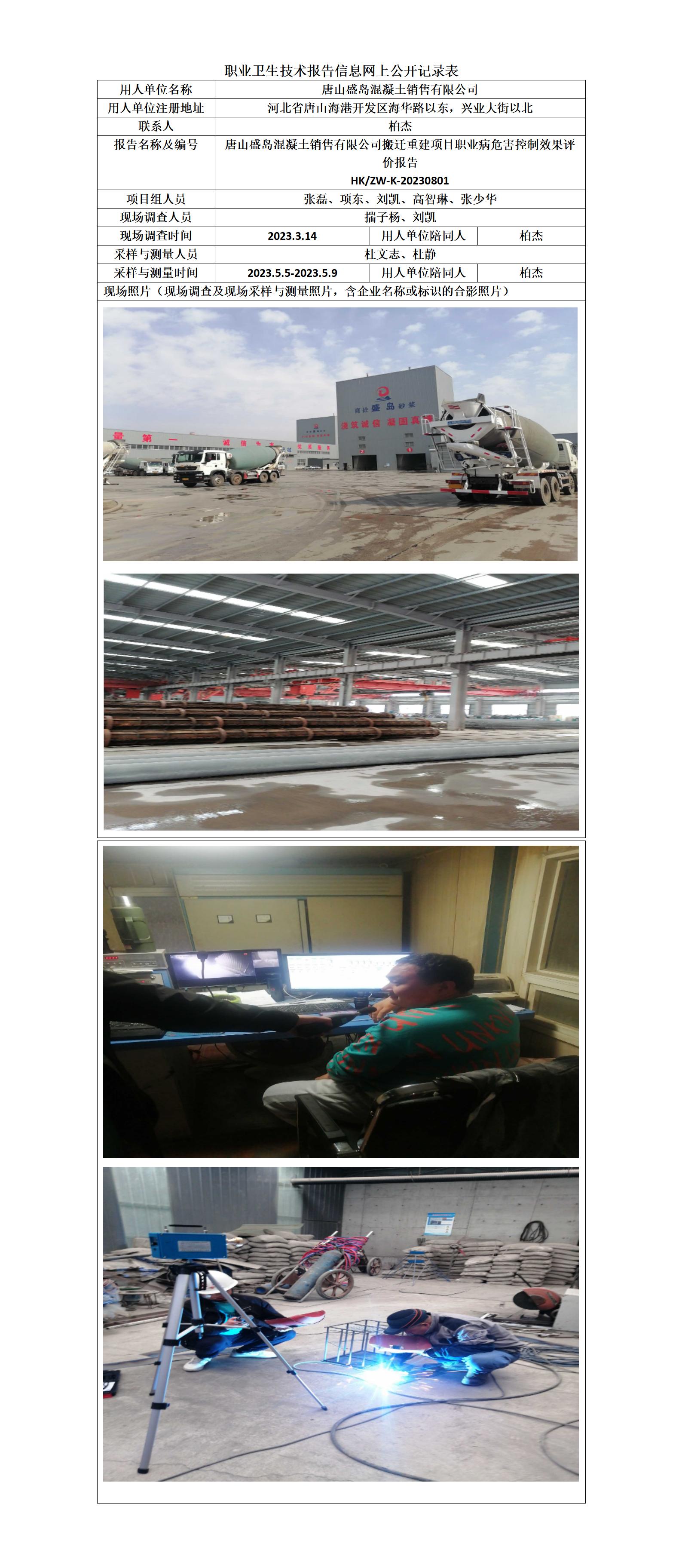 唐山盛岛混凝土销售有限公司搬迁重建项目职业病危害控制效果评价报告
