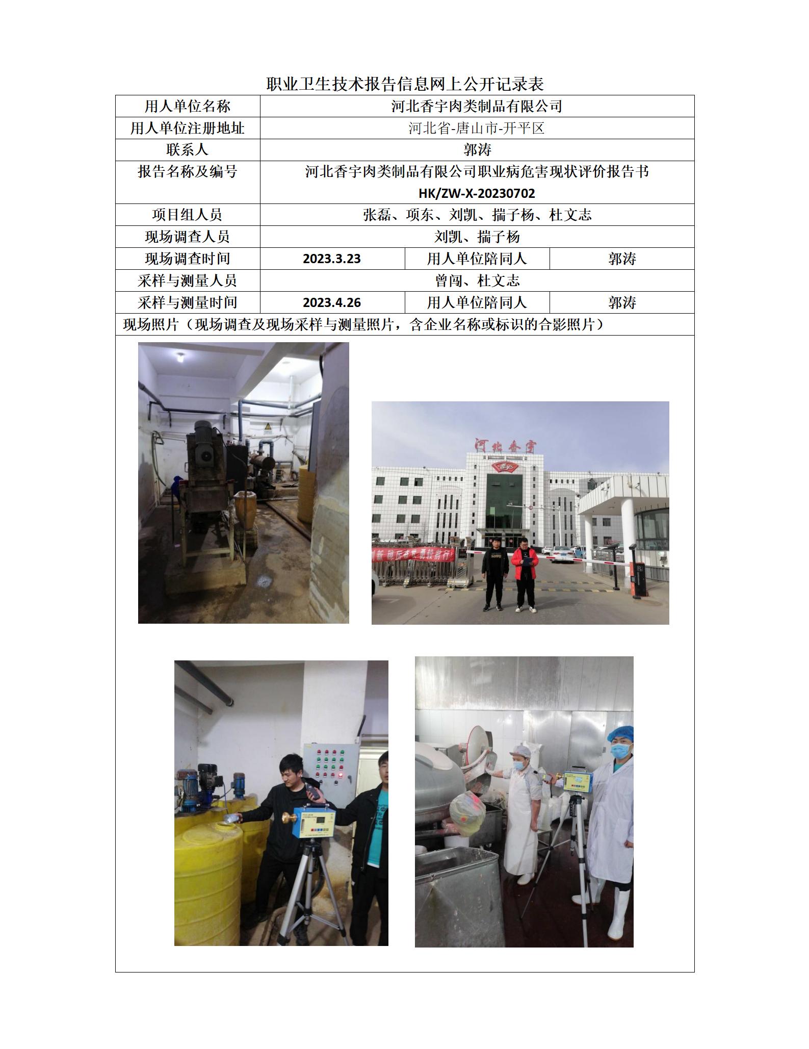 河北香宇肉类制品有限公司职业病危害现状评价报告书