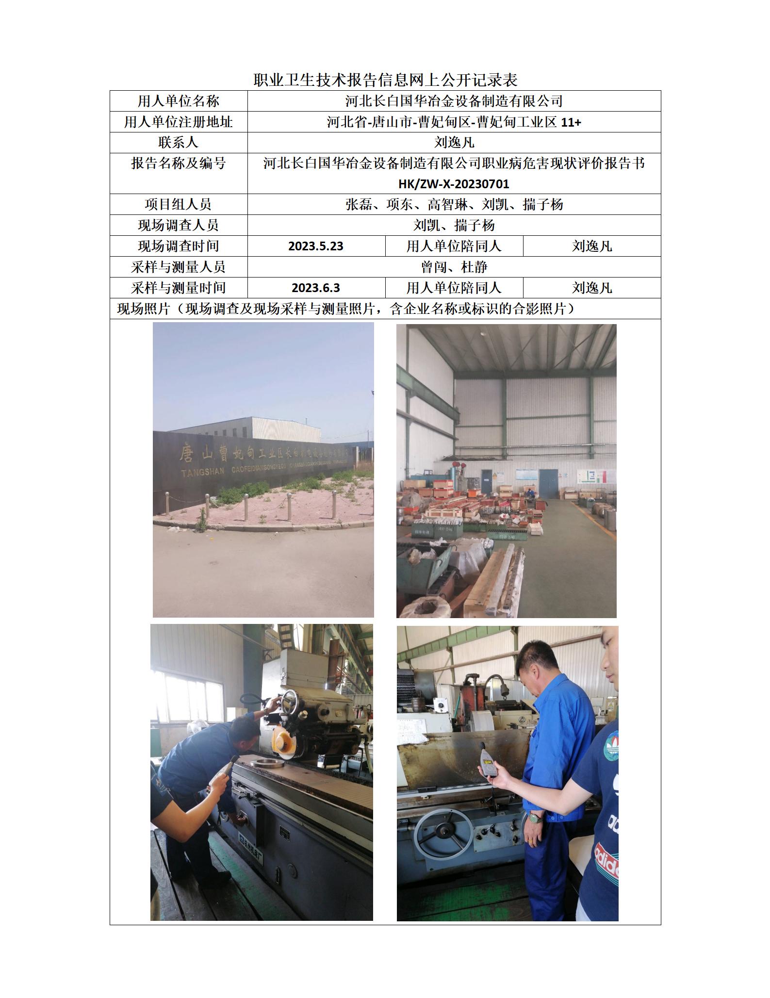 河北长白国华冶金设备制造有限公司职业病危害现状评价报告书