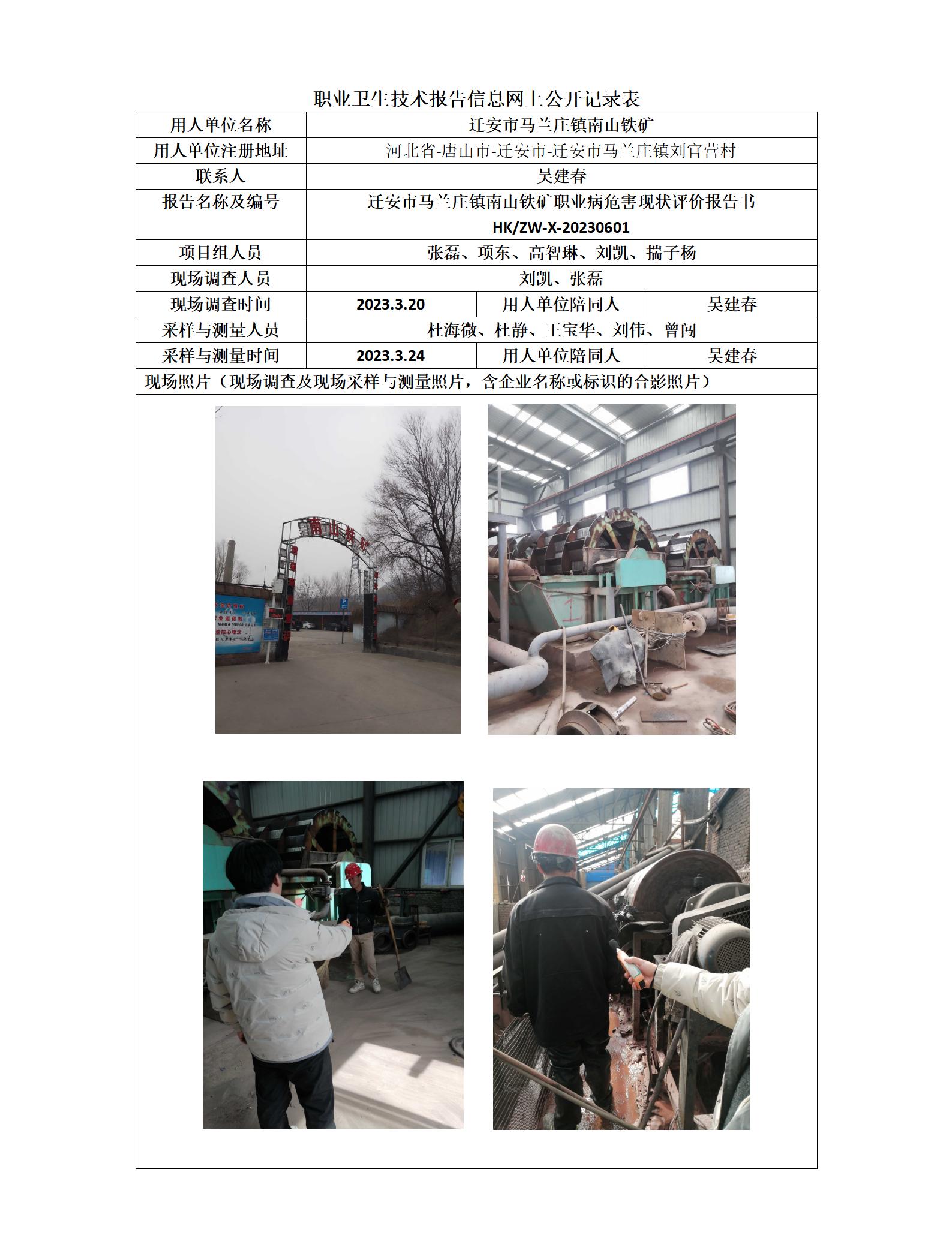 迁安市马兰庄镇南山铁矿职业病危害现状评价报告书