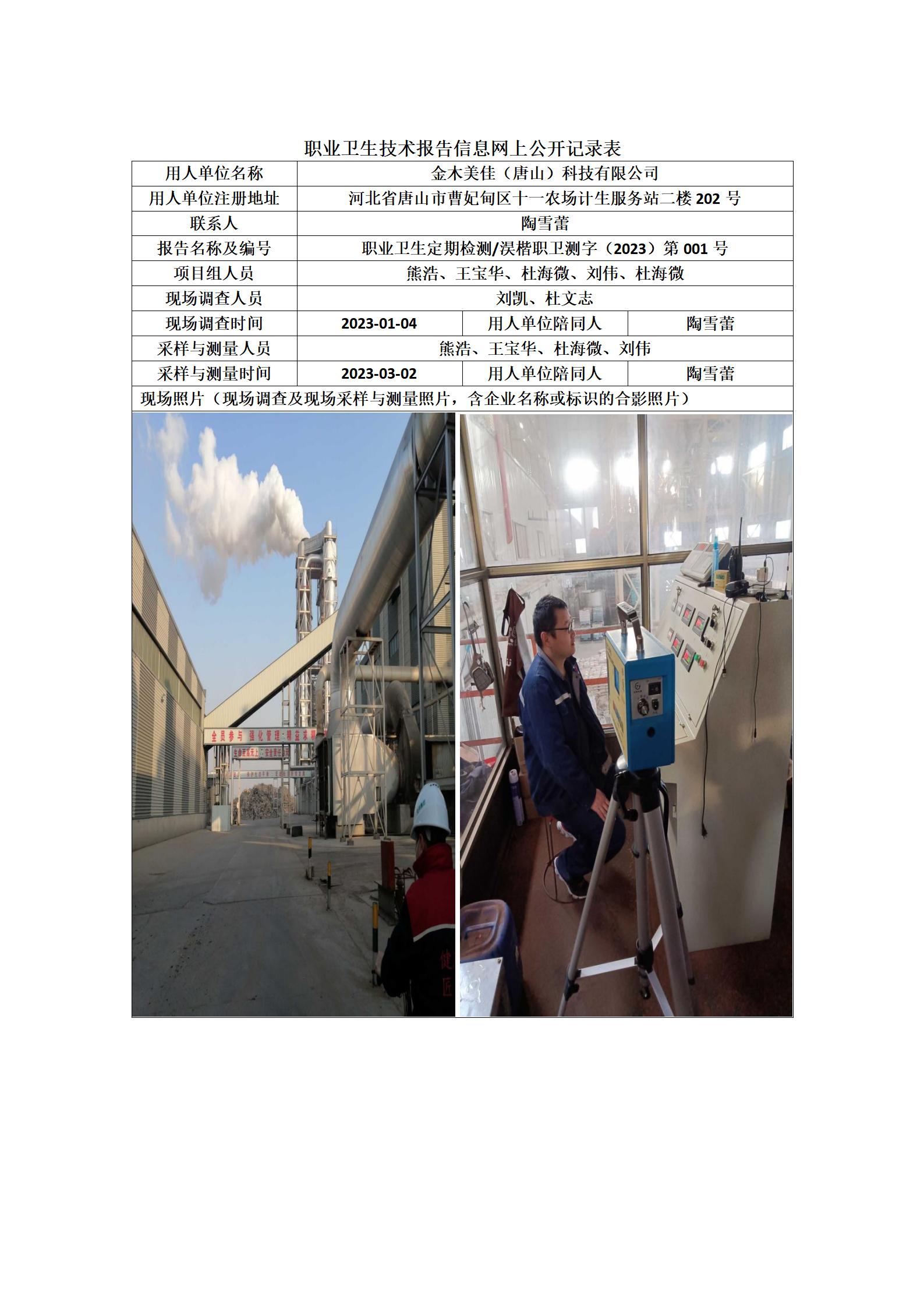 金木美佳(唐山)科技有限公司定期检测报告