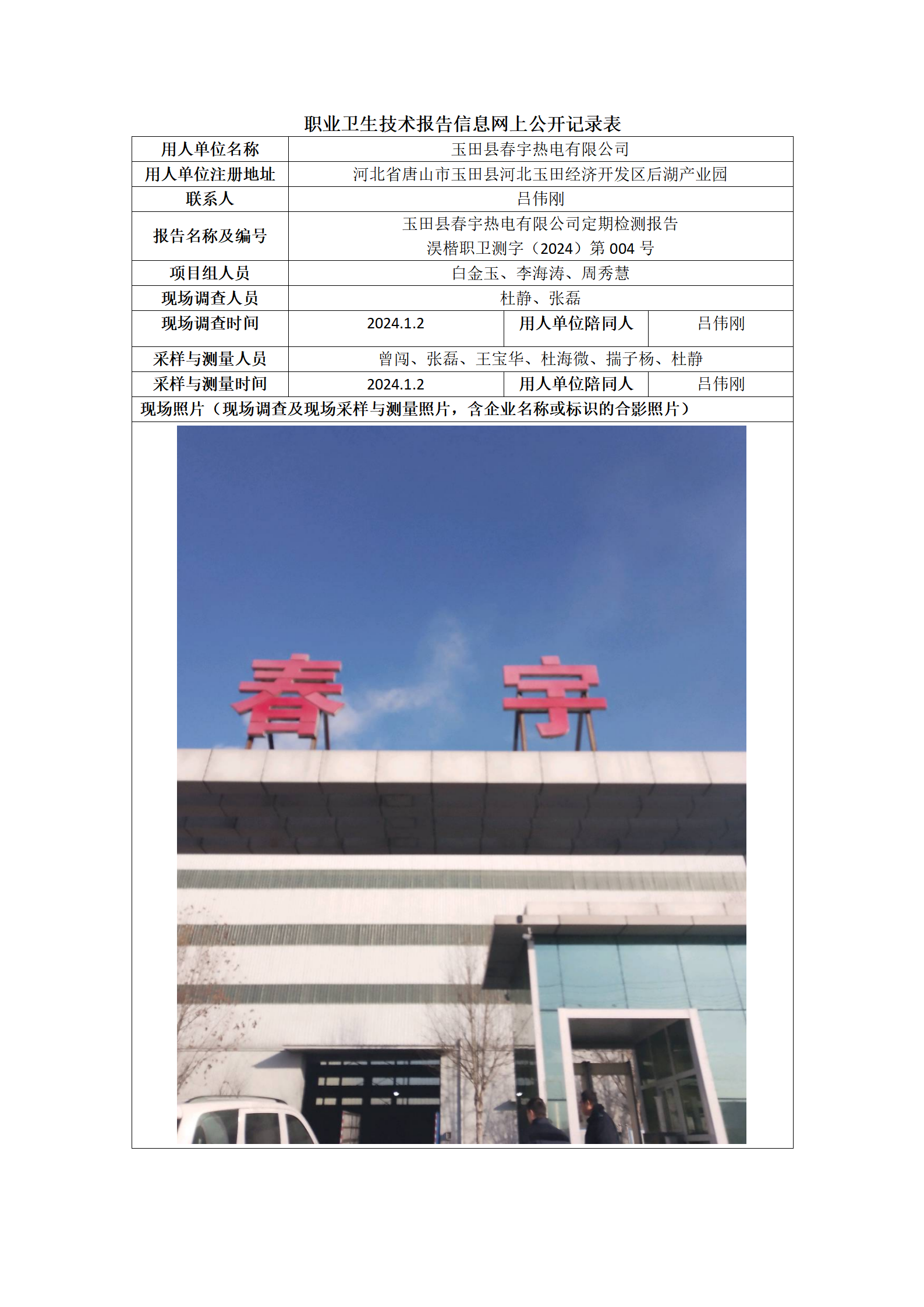 唐山冀东地热能开发有限公司曹妃甸新城地热供暖工程(二期)职业病危害控制效果评价报告