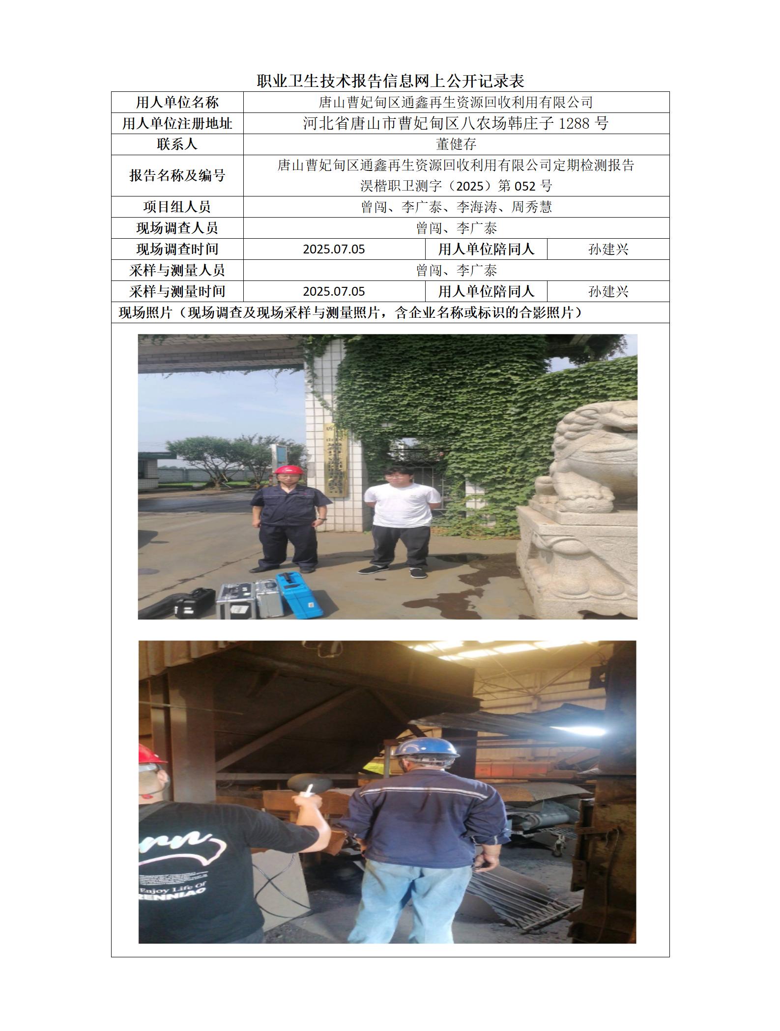 唐山曹妃甸区通鑫再生资源回收利用有限公司定期检测报告